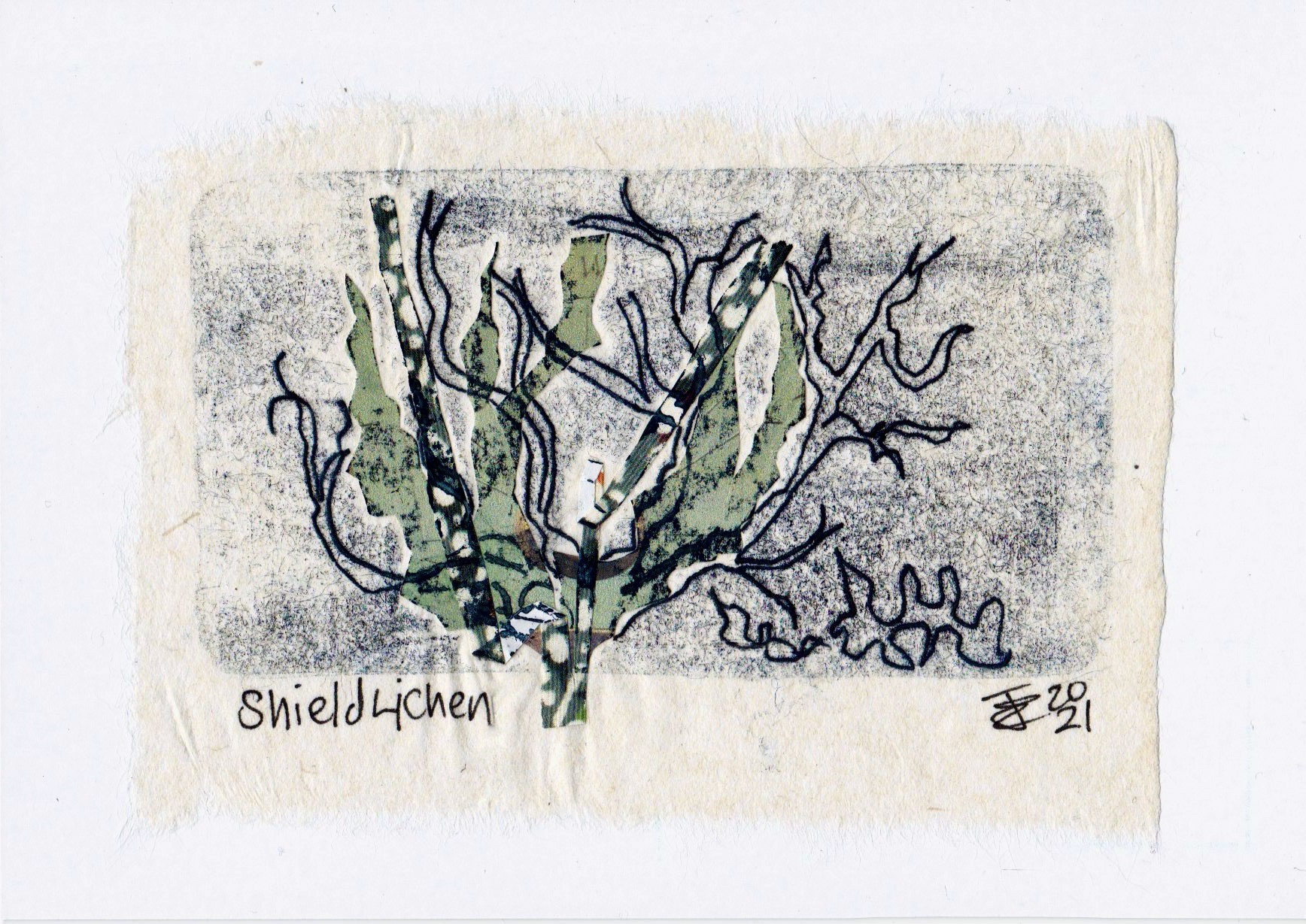 Shield Lichen Monotype print with collage 2021