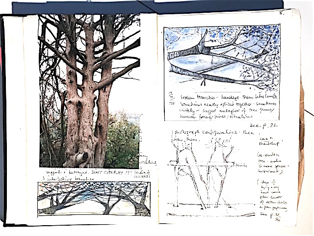 I am fascinated by the symbiotic relationship between mycorrhizal fungi and trees, by which nutrients are shared. Entering the tree roots, the fungi spores develop an extensive system of capillaries; very fine ‘secondary roots’ – which enable the tree to draw water from a much greater area of soil.