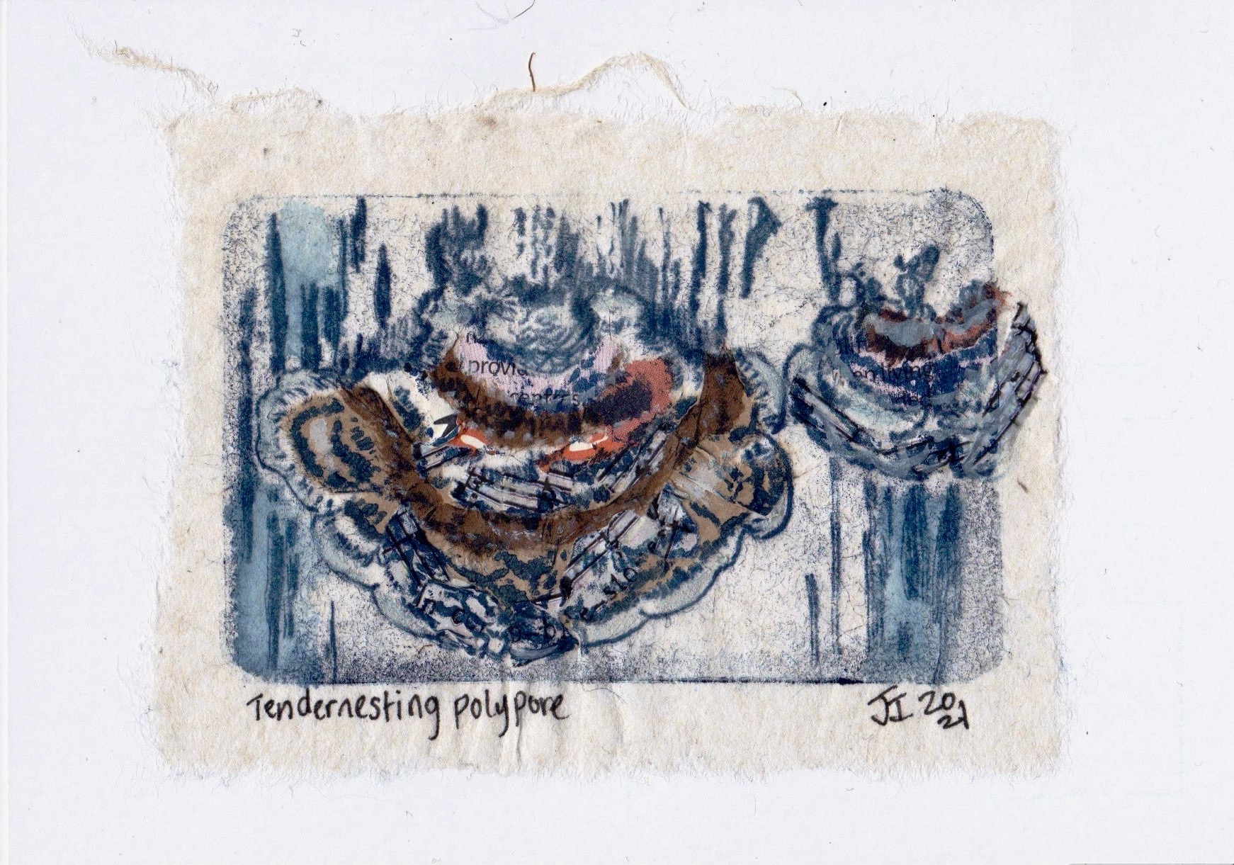 Tendernesting Polypore Monotype print with collage 2021