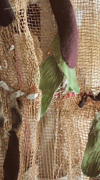 Copper mesh, linen, cotton, ribbon, string 36x20x20cm January 2022
