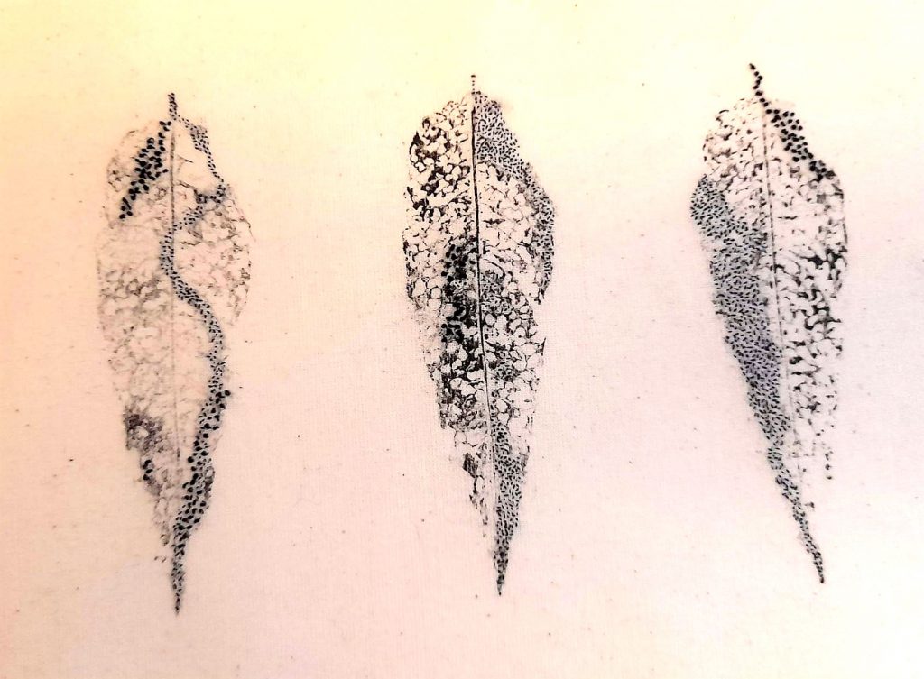 My current work explores the physical changes created by the action of insects and fungi on decaying plants, which I collect from undergrowth and leaf falls in autumn. I am particularly inspired by the colours, lines and perforations made in dock leaves by the larvae of the dock beetle – a tiny emerald-green iridescent insect.