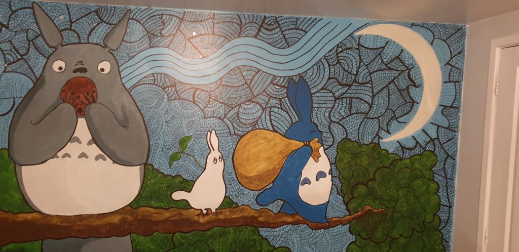 A private commission from my wife. I plan to knock back the bold colours of the base image by covering it with simple repeat patterns which will, I hope, build up a visual texture.